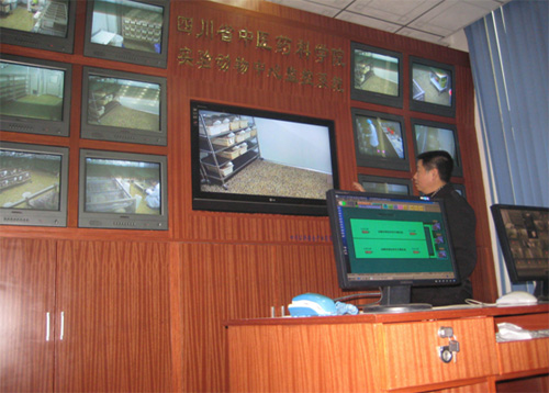 料室,共安装日夜两用活动型CCD摄象机 48台。监听器48台。语音调度分机48个。控制中心设立监控管